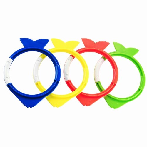 S kroužky na potápění ve tvaru rybičky zažijete hodiny zábavy. Sada obsahuje 4 barevné kroužky - modrá, zelená, žlutá a červená. Kroužek jako rybička sedí vzpřímeně ve vodě a je skvělá pro nácvik základních plaveckých dovedností.