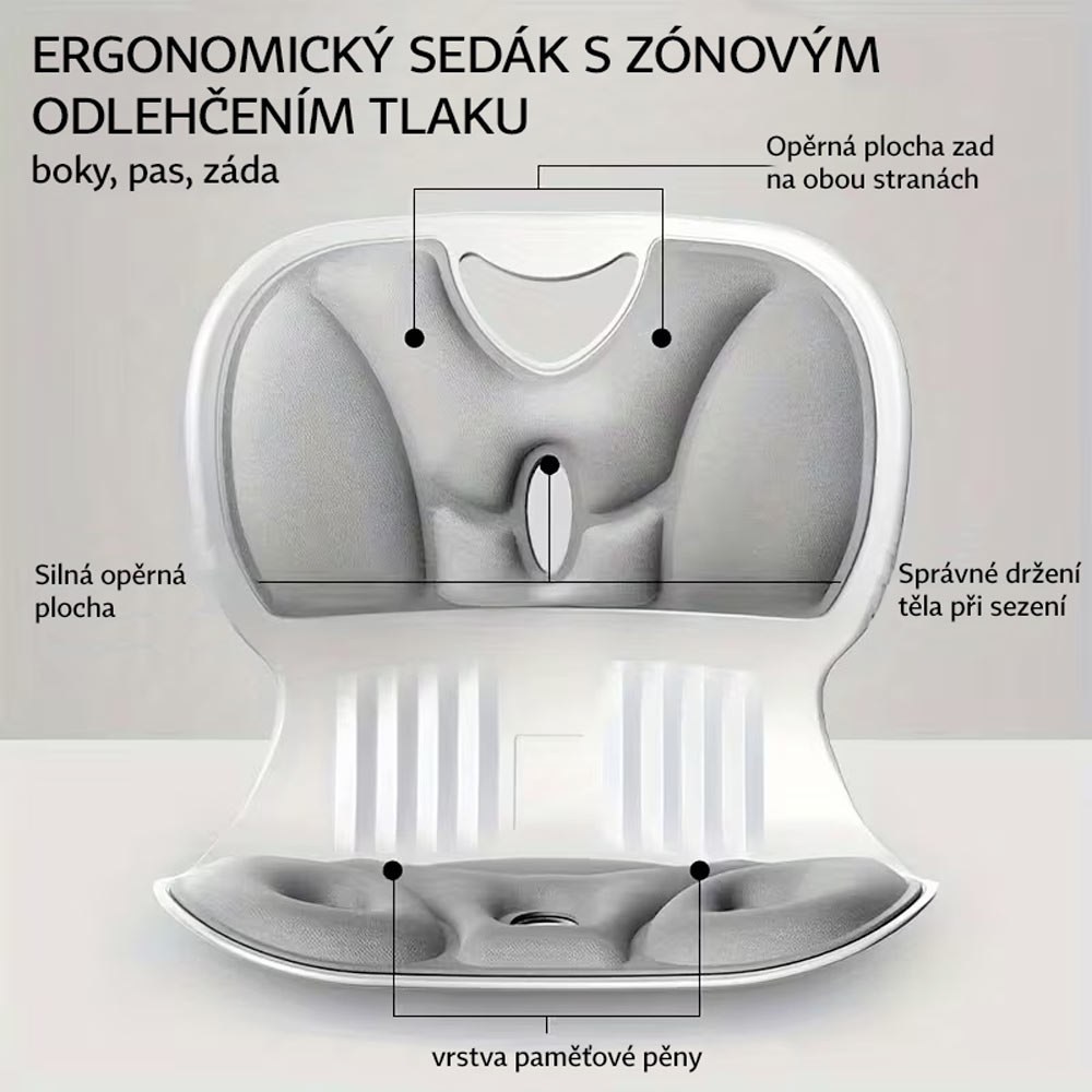 Bederní opěrný polštář s paměťovou pěnou, který se dokonale přizpůsobí vašemu tělu.