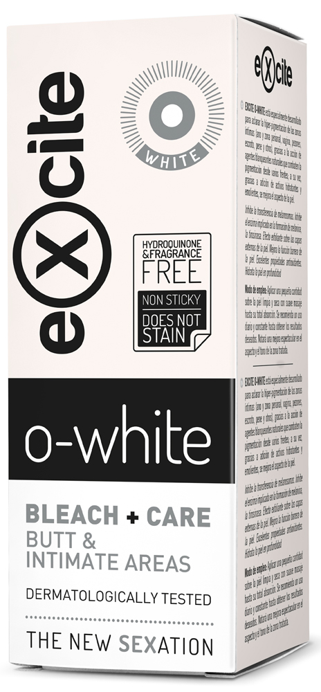 Excite O-white krém šetrným způsobem bělí pigmentované oblasti v okolí genitálií, análního otvoru a bradavek. Krém má jemné složení a příjemně voní, jeho použití je navíc snadné a účinné. Díky působení přírodních bělících prostředků zlepší vzhled pokožky. Obsažená Aloe Vera má navíc změkčující a zvláčňující účinek a o pokožku dále pečuje.