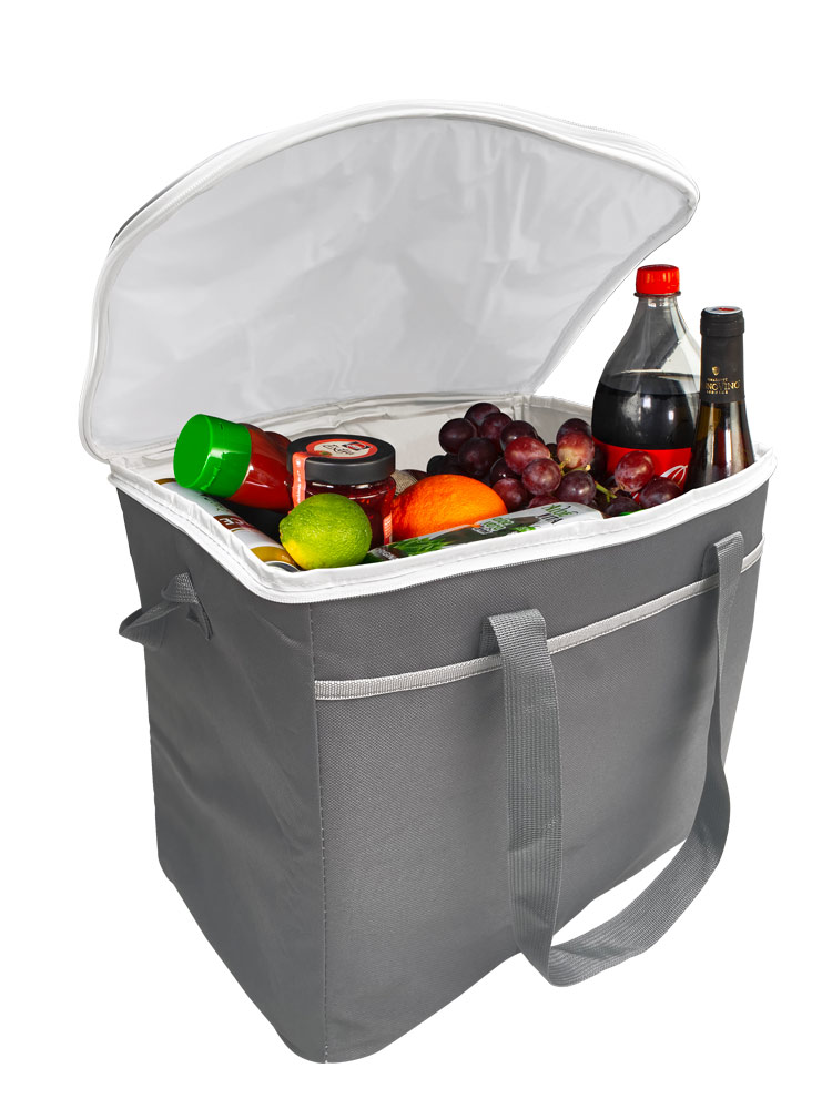 Chladicí taška je také ideální při přepravě zmrazených potravin z obchodu do vašeho domova. Pohodlný přístup do vnitřku tašky usnadňuje zip a především umožňuje složit tašku "na plocho". Izolační vrstva pomáhá udržovat nízkou teplotu produktů a to i po dobu několika hodin.