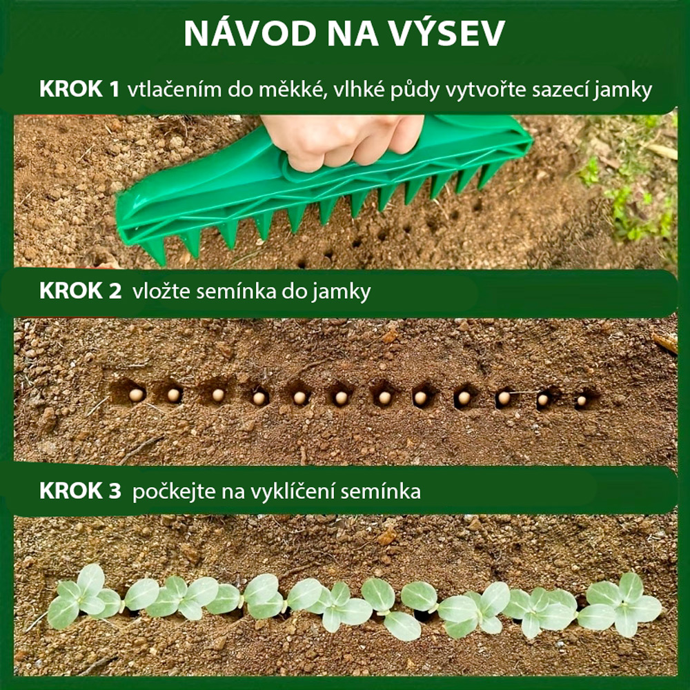 Se sadou pro výsev vytvoříte rovnoměrné rozmístění otvorů pro semena během několika vteřin. Stačí zatlačit do zeminy a můžete okamžitě vysévat zeleninu, květiny nebo bylinky.
