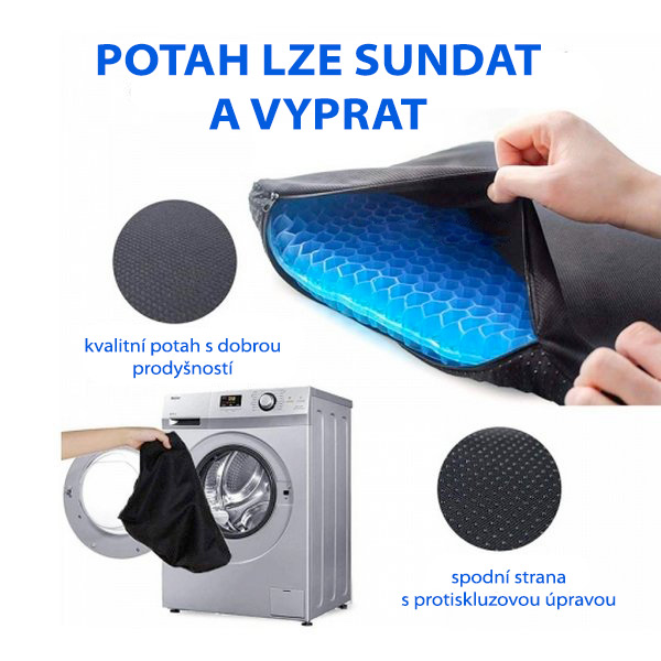 Gelový podsedák na židli s potahem má mřížkovanou gelovou výplň, která je dokonale flexibilní. Speciální design podobný včelím plástvím absorbuje tlak a dokonale podporuje páteř. Inovativní a pohodlné řešení, které vám poskytne vytouženou úlevu od problémů se zády.