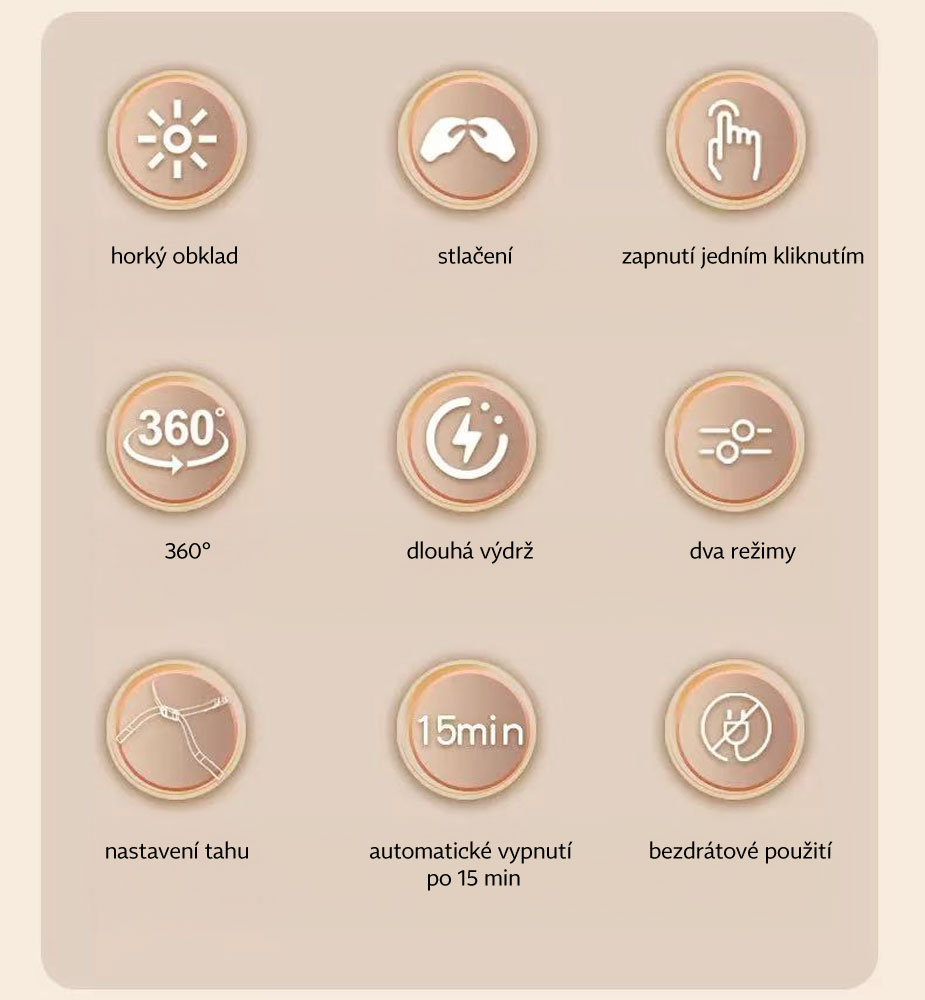 - hloubková masáž, teplo (pasivní infračervený ohřev) a vibrace v jednom