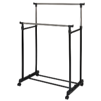 Praktický dvojitý stojan na šaty s výškově nastavitelnými rameny a s odkladačem na boty nebo krabice.