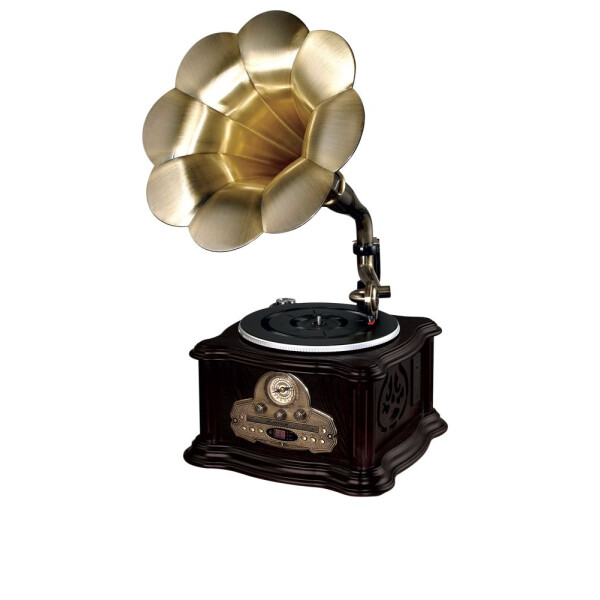 Vícerychlostní gramofon, dálkové ovládání, CD/MP3 přehrávač, rádio.