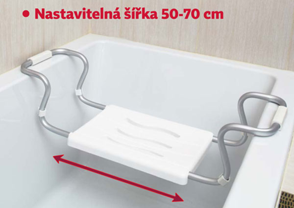 Sedátko do vany nejen pro seniory. Sedátko do vany zajistí maximální pohodlí při sprchování ve vaně, koupelích nohou apod. Sedátko je vyrobeno z pevného materiálu, konstrukce umožňuje používat sedátko v běžně dostupných vanách, jejichž vnitřní rozměry se pohybují mezi 47 až max 66 cm. Maximální nosnost sedátka je 100 kg. Sedátko do vany ocení hlavně starší a hůře pohyblivé osoby.