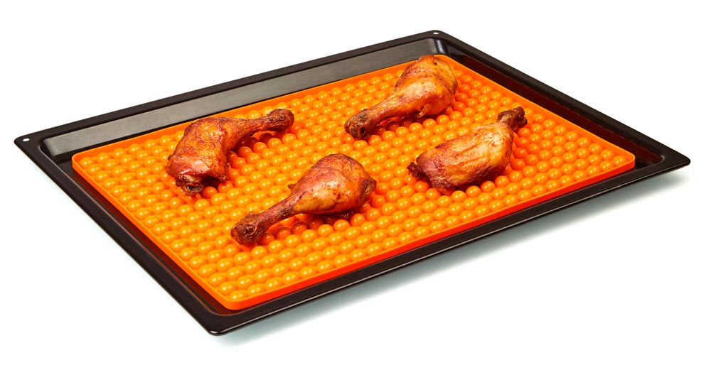 Silikonová pečící podložka je skvělým pomocníkem do kuchyně, který velmi usnadní pečení. Díky silikonové podložce připravovaný pokrm neleží v omastku, ale na výstupcích silikonové podložky. Zároveň silikonová podložka umožňuje cirkulaci vzduchu pod pokrmem a díky tomu bude jídlo šťavnaté, rovnoměrně propečené, velmi zdravé a chutné!
