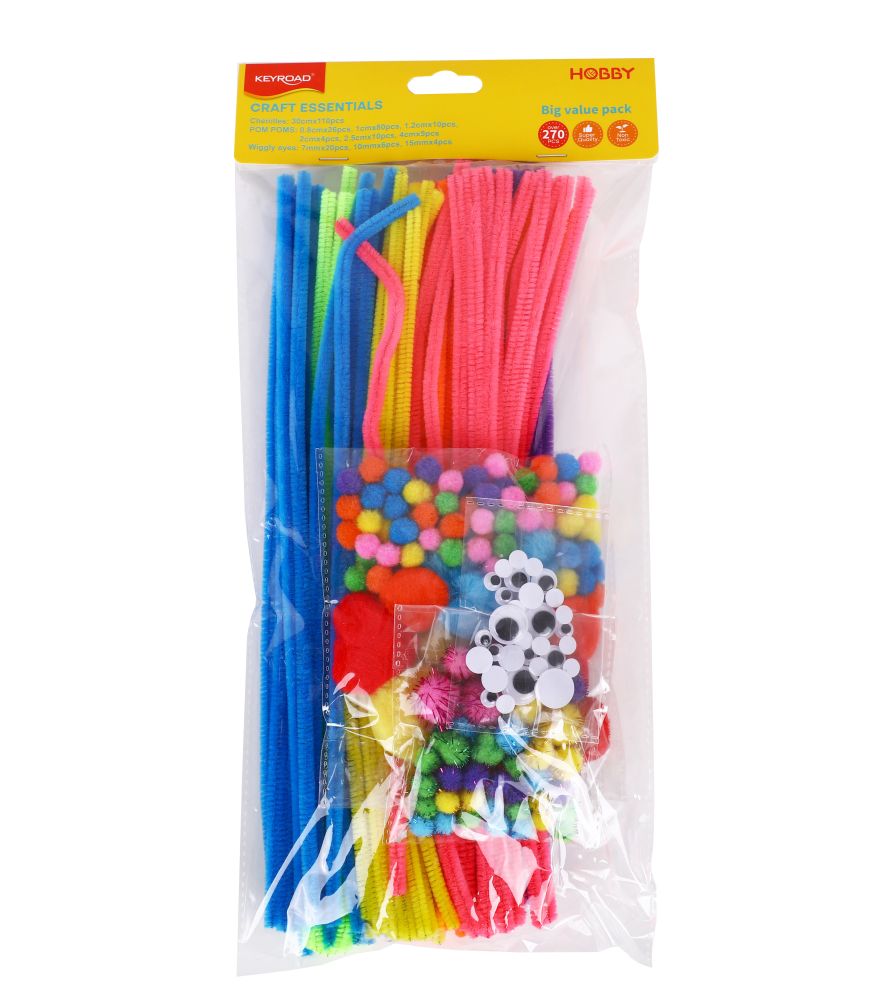 Tato bohatá tvořivá sada obsahuje přes 270 ks barevných bambulek, chlupatých drátků a dekoračních očiček. Všechny komponenty jsou netoxické a vyrobené ve vysoké kvalitě.