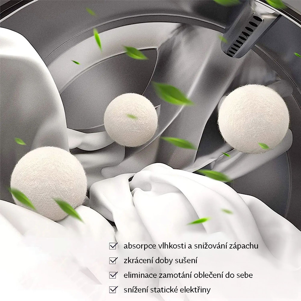 Vlněné koule do sušičky jsou šetrnou a ekologickou náhradou jednorázových ubrousků do sušičky. Možnost provonění prádla pomocí parfémů na prádlo.